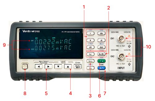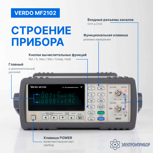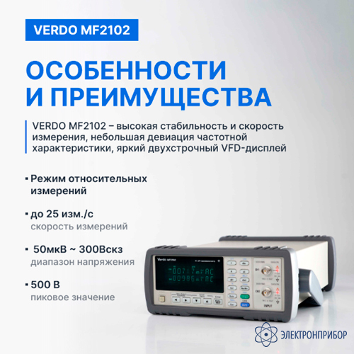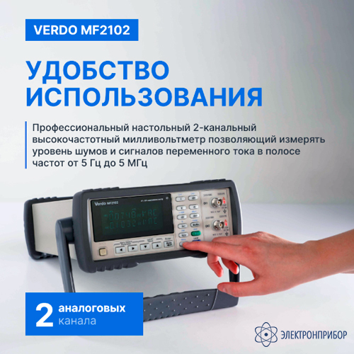 Особенности ВЧ-милливольтметра 2-канального, 5 МГц VERDO MF2102: