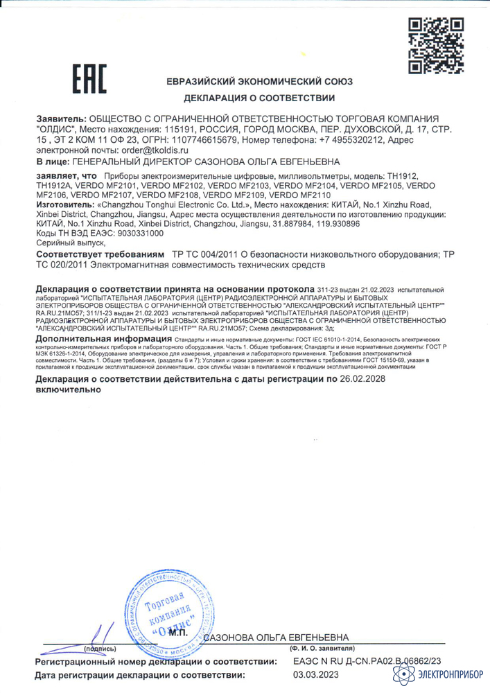 - Серийный номер прибора.