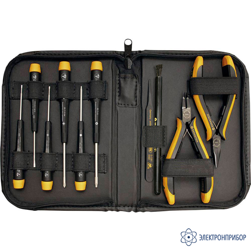 Набор 2250 VKG состоит из 10 антистатических монтажных и регулировочных инструментов в мягком футляре на молнии.