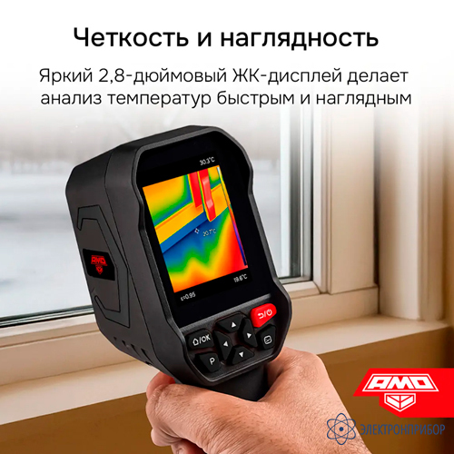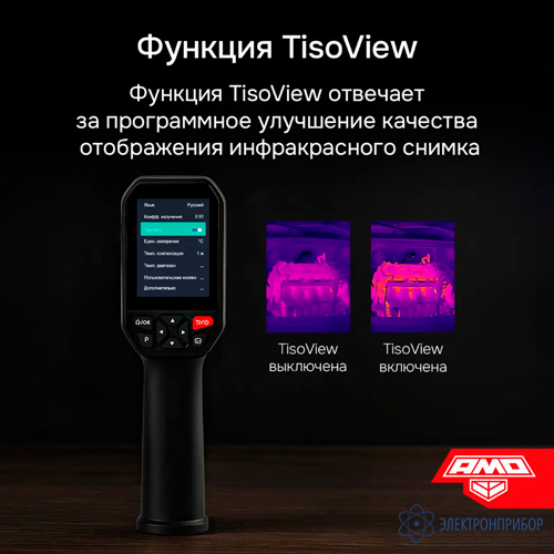 Тепловизор AMO T833 – профессиональный диагностический инструмент с аккумуляторным питанием, на основе болометрической матрицы с разрешением 256 x 192 пикселей, позволяющий получать термограммы с высокой детализацией, реализуя программное улучшение качества изображения TisoView.