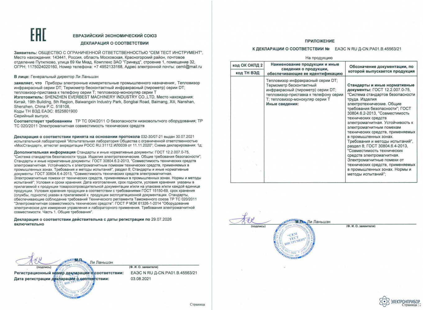 № Наименование Количество 1 Тепловизор DT-983 1 2 Аккумулятор 3,7 В 1 3 Зарядное устройство 1 4 SD-карта 1 5 Ремень 1 6 USB-кабель 1 7 Программное обеспечение на диске 1 8 Транспортировочный кейс 1 -