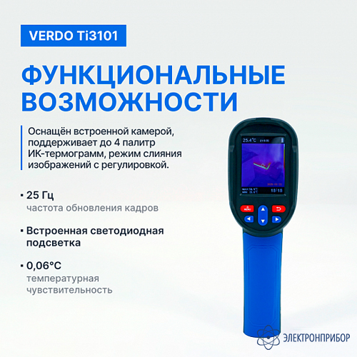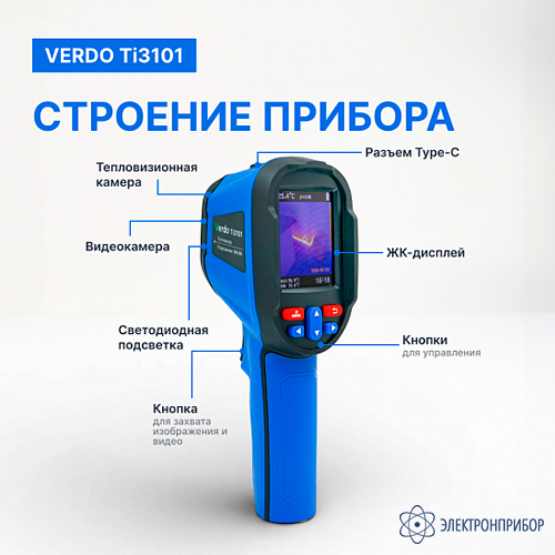 Тепловизор Verdo Ti3101 представляет собой инфракрасную камеру, которая объединяет измерение температуры поверхности и тепловизионное изображение в режиме реального времени. Кроме того, центральный измерительный курсор используется для быстрого и точного определения местоположения для измерения температуры целевого объекта.