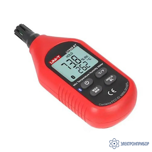 Термогигрометр UNI-T UT333BT – устройство, с помощью которого можно с минимальной погрешностью измерять влажность и температуру воздуха. Предназначено для использования специалистами по проверке качества микроклимата в домах, квартирах и офисах. Прибор прост в использовании, имеет небольшие размеры и позволяет в течение 0,5 с выполнить необходимые замеры и сохранить их для дальнейшего составления технической документации.