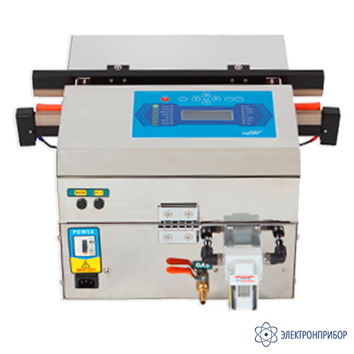 Параметр Значение Вид исполнения бескамерный, настольный Длина шва 600 мм Ширина шва 10 мм Компрессор встроенный эжекторный насос Производительность насоса 40 литров Наличие функции газонаполнения да Максимальный цикл при непрерывной работе 1500 циклов в день (упаковка в формат А4) Материал корпуса нержавеющая сталь STS 304 Контроль откачки таймер, датчик вакуума Индикация вакуумирования цифровые значения на ЖК дисплее Тип спайки односторонняя Контроль наполнения газом, сварки, охлаждения таймер Мощность 1,7 КВт Питание 220/230 В, 50/60 Гц Масса 29 кг -