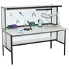 Модели выпускаются в различных конфигурациях и типоразмерах. Конструкция на алюминиевом каркасе и антистатическая столешница позволяют безопасно работать с измерительным оборудованием и чувствительной электроникой.
