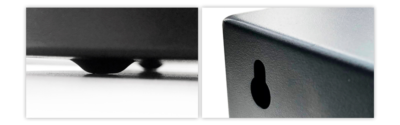 Корпус оснащён ножками для горизонтального размещения на полу, столе или полке. Кроме того, на задней панели предусмотрены монтажные отверстия, позволяющие закрепить стабилизатор на стене.