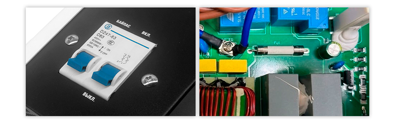 - от короткого замыкания — срабатывает внутренняя система защиты и предохранитель